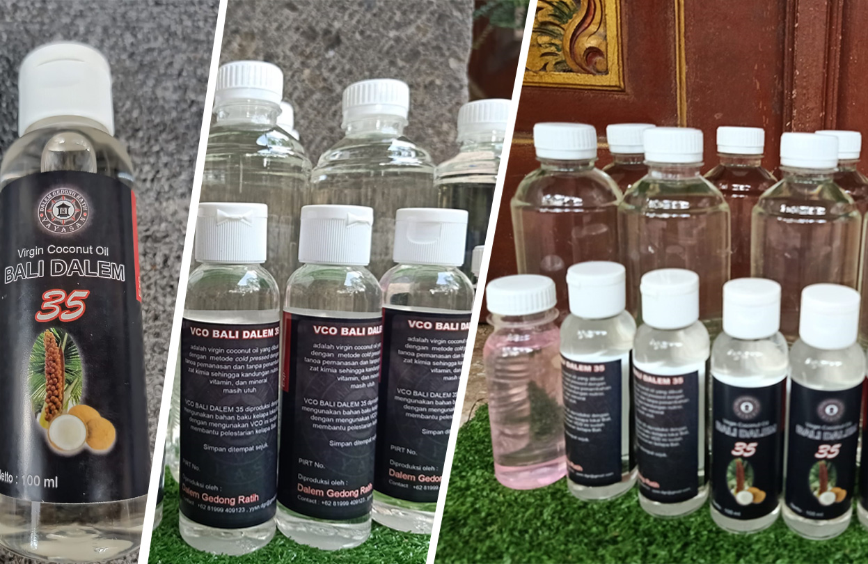 Berangkat dari kekayaan warisan Bali, Yayasan Dalem Gedong Ratih mengembangkan VCO Bali Dalem, sebuah minyak kelapa murni yang diolah melalui proses unik berbasis sastra lontar Kelapa Tatwa. Dari 108 jenis kelapa unik yang disebutkan dalam lontar tersebut—masing-masing dengan ciri, nama, energi, dan manfaat simboliknya—yayasan melakukan sakralisasi serta pengolahan khusus sehingga menghasilkan VCO yang bukan hanya murni secara fisik, tetapi juga memiliki nilai ritual dan spiritual yang tinggi. Proses ini dilakukan melalui pemilihan kelapa, ritual penyucian, serta pengolahan yang mengikuti tradisi, sehingga diyakini memperkuat manfaat minyak tersebut baik untuk penunjang kesehatan medis, pengobatan tradisional, maupun pemulihan energi non-medis sesuai keyakinan masyarakat Bali.